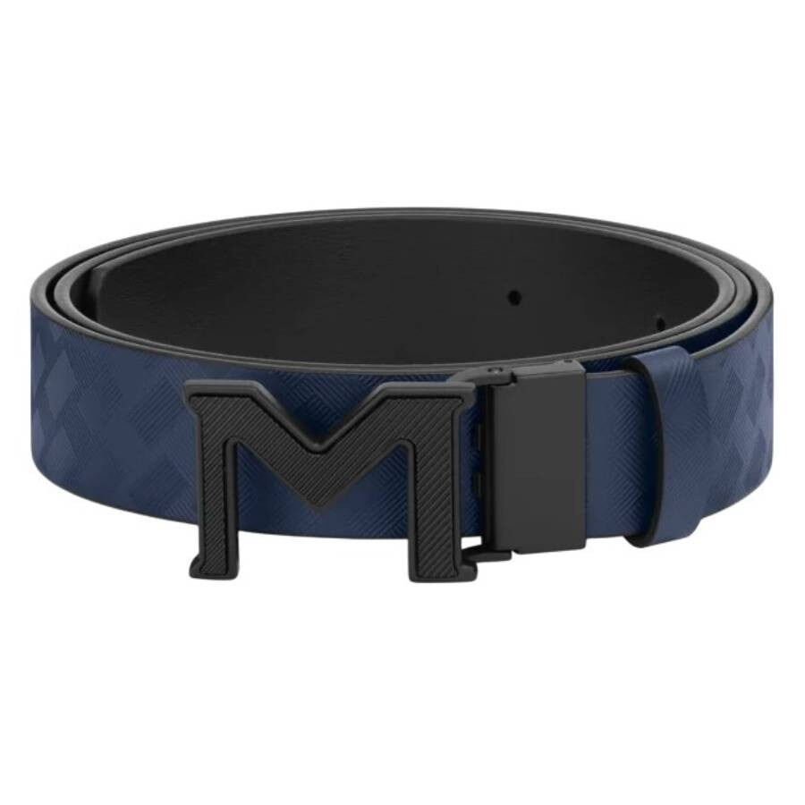 MontBlanc Men's Belts. Fashion category: Belts. SKU: 198648. Color: Blue. Size: 47.24" x 1.38". Montblanc Extreme 3.0 M Buckle Reversible Leather Belt. Crafted with Extreme 3.0 textured blue leather on one side and smooth black leather on the other, this reversible belt offers a blend of sporty edge and refined style. It is finished with a bold M-shaped buckle that pays tribute to Montblanc's timeless design heritage. 100% Leather. Made in Italy. GENERAL Ring Style: Fashion Size Info: 47.24" x 1.38" Material: Leather Gender: Mens Color: Blue Apparel Type: Belts INFORMATION Brand: Montblanc Model: 198648 ADDITIONAL INFO Jomashop Sku: MB198648 Department: Fashion Accessories Category: Belts