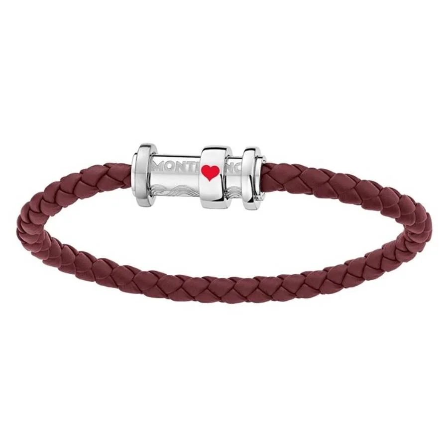MontBlanc Men's Bracelets. SKU: 128346. Color: Red. Montblanc Meisterstuck Ace Of Hearts Woven Bracelet. Inspired by the adventurous spirit of Around the World in 80 Days, this bracelet is crafted from woven red leather and features a polished stainless steel magnetic clasp. The closure is embossed with an ace of hearts symbol, a nod to the playing card suits that play a symbolic role in the novel’s storyline. Material: Leather, Steel. GENERAL Color: Red INFORMATION Brand: Montblanc Gender: Mens Model: 128346 DETAILS Ring Style: Fashion ADDITIONAL INFO Jomashop Sku: -MB128346 Department: Jewelry Category: Bracelets