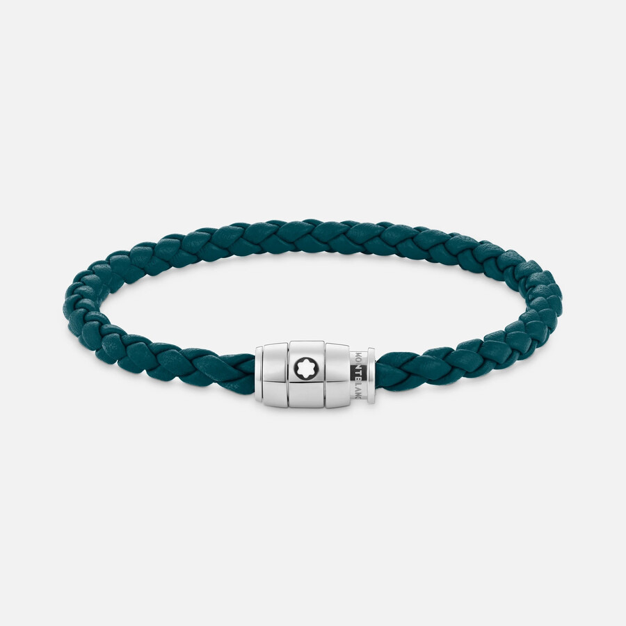 MontBlanc Men's Bracelets. Meisterstuck series. SKU: MB134067. Color: Cyprus Blue. Montblanc Meisterstuck Steel Cyprus Blue Leather Bracelet. Woven from Cyprus blue leather, this bracelet features a polished stainless steel clasp accented with the Montblanc emblem, combining modern elegance with classic craftsmanship. GENERAL Color: Cyprus Blue Collection Name: Meisterstuck INFORMATION Brand: Montblanc Series: Meisterstuck Gender: Mens Model: MB13406789 DETAILS Ring Style: Fashion ADDITIONAL INFO Jomashop Sku: -MB13406789 Department: Jewelry Category: Bracelets