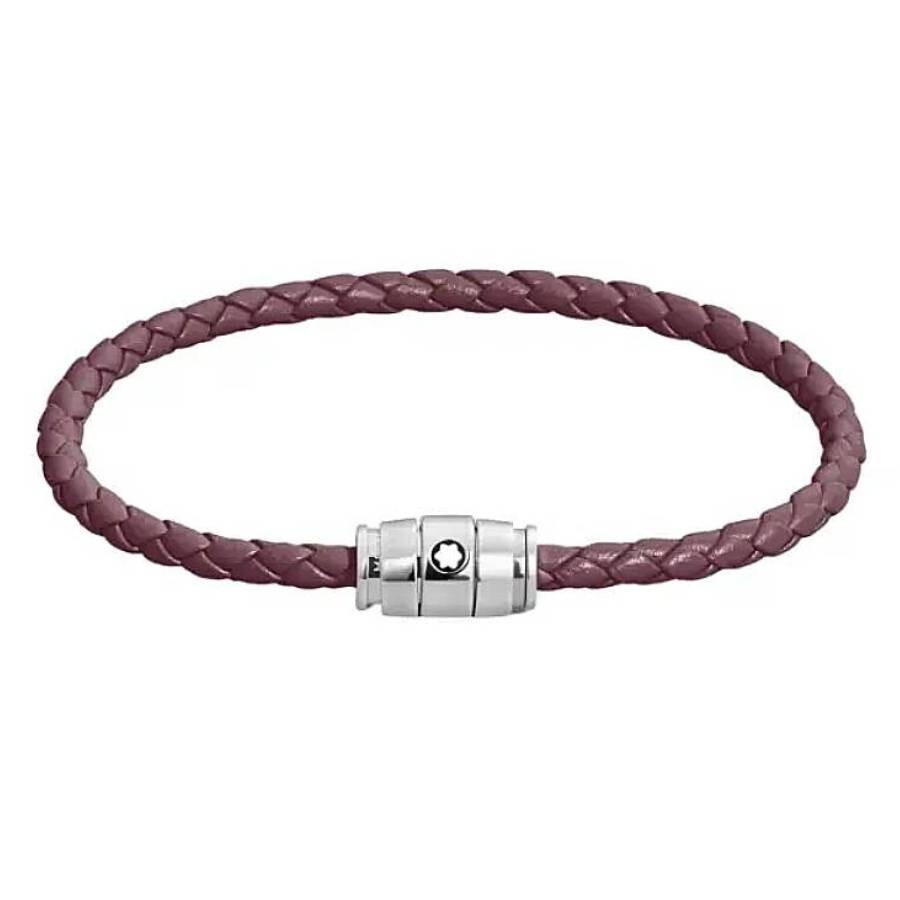 Montblanc Bracelets. Color: Cassis. Montblanc Meisterstuck Woven Leather Bracelet. This bracelet is crafted from woven leather and features a polished stainless steel clasp. A single steel ring bearing the iconic Montblanc emblem adds a refined finishing touch to the design. Material: Leather;Stainless Steel. GENERAL Color: Cassis INFORMATION Brand: Montblanc Gender: Mens Model: 13431363 DETAILS Ring Style: Fashion ADDITIONAL INFO Jomashop Sku: -MB13431360N Department: Jewelry Category: Bracelets