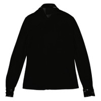 Moschino Ladies Tops. Fashion category: Shirts & Blouses. SKU: J0210-5534-1555. Color: Black. Moschino Black Vinyl Detail Long-Sleeve Organzine Shirt. The organzine shirt features a regular fit, long sleeves, a concealed front button fastening and vinyl collar; placket and cuffs. 100% Viscose. GENERAL Color: Black INFORMATION Brand: Moschino Gender: Womens Model: J0210-5534-1555 DETAILS Category: Tops Apparel Type: Shirts & Blouses Material: Viscose ADDITIONAL INFO Jomashop Sku: -J021055341555 Department: Apparel
