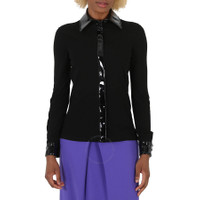 Moschino Black Vinyl Detail Long-Sleeve Organzine Shirt