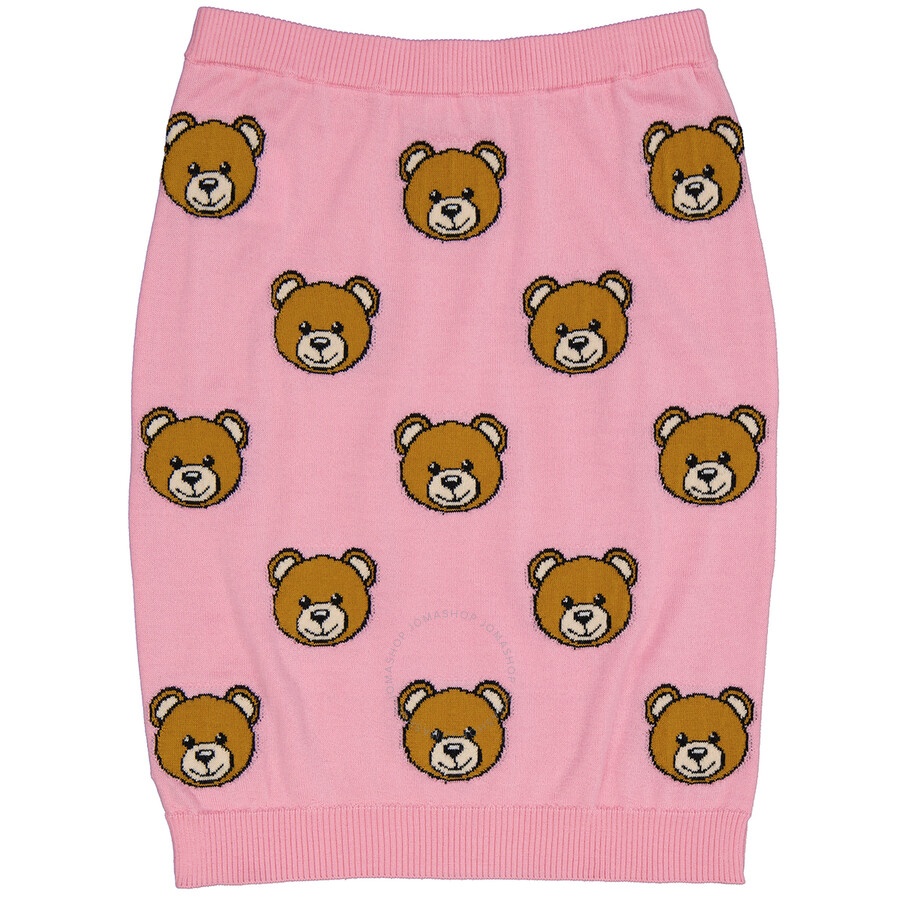 Moschino Ladies Fantasia Rosa Allover Teddy Bear Wool Skirt