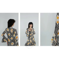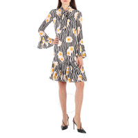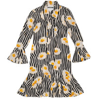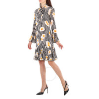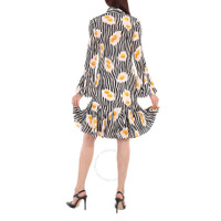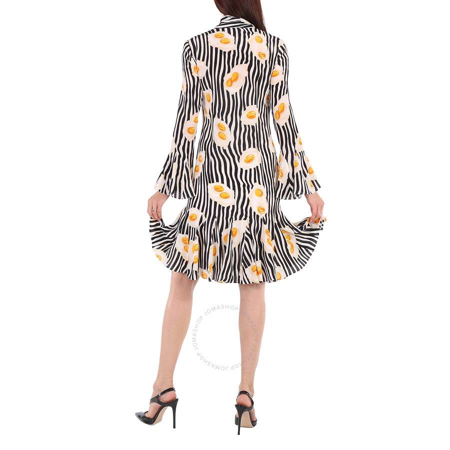 Moschino Ladies Dresses. SKU: 0417-0556-1555. Color: Fantasy Print Black. Moschino Ladies Fantasy Print Black Egg Print Dress. Fried eggs with a side of wavy stripes bring sunny appeal to this silk crêpe de Chine dress. Features a flutter cuffs and hem along with a tied neckline offer a sweet finish to the savory look. Made in Italy. GENERAL Color: Fantasy Print Black INFORMATION Brand: Moschino Gender: Womens Model: 0417-0556-1555 DETAILS Category: Dresses Apparel Type: Casual Dresses ADDITIONAL INFO Jomashop Sku: -041705561555N Department: Apparel