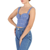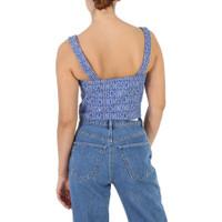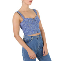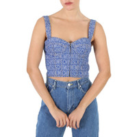 Moschino Ladies Fantasy Print Blue Monogram Denim Cropped Top