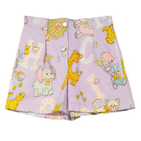 Moschino Ladies Purple All Over Logo Circus Print Shorts, Brand Size 38 (US Size 4)