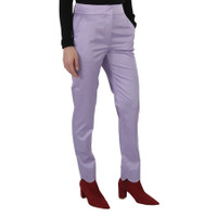 Moschino Ladies Bottoms. Fashion category: Pants & Leggings. SKU: A0328-0434-0264. Color: Purple. Moschino Ladies Purple High-Waisted Tailored Trousers. Featuring a zip fly, concealed hook-and-bar fastenig, two side slit pockets, high-waist. Materials: 54% Cotton, 40% Cupro, 6% Spandex/Elastane, Lining: 60% Acetate, 40% Cupro. GENERAL Color: Purple INFORMATION Brand: Moschino Gender: Womens Model: A0328-0434-0264 DETAILS Category: Bottoms Apparel Type: Pants & Leggings Material: Cotton, Cupro ADDITIONAL INFO Jomashop Sku: -A032804340264 Department: Apparel