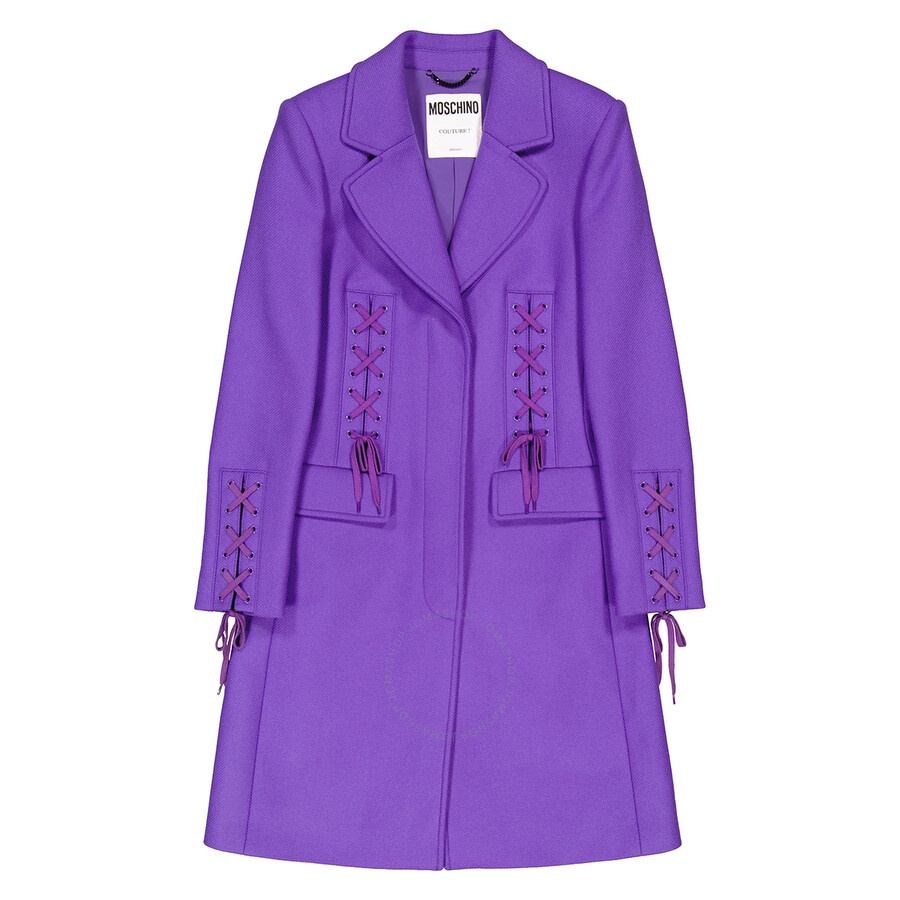 Moschino Ladies Outerwear. Fashion category: Coats & Jackets. SKU: A0620-5513-0278. Color: Purple. Moschino Ladies Purple Long Single-Breasted Coat. Moschino's coat featuring a front button fastening, long sleeves, 2 front flap pockets, rear vent. GENERAL Color: Purple INFORMATION Brand: Moschino Gender: Womens Model: A0620-5513-0278 DETAILS Category: Outerwear Apparel Type: Coats & Jackets ADDITIONAL INFO Jomashop Sku: -A062055130278 Department: Apparel