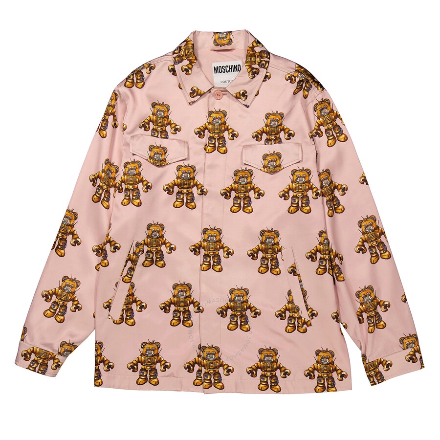 Moschino Men's Outerwear. Fashion category: Coats & Jackets. SKU: V0605-7050-1187. Color: Pink. Moschino Pink Robot Bear Jacket. Moschino's jacket features all-over Robot Teddy print, long sleeves, 2 chest pockets, a straight hem and a classic collar. GENERAL Color: Pink INFORMATION Brand: Moschino Gender: Mens Model: V0605-7050-1187 DETAILS Category: Outerwear Apparel Type: Coats & Jackets ADDITIONAL INFO Jomashop Sku: -V060570501187 Department: Apparel