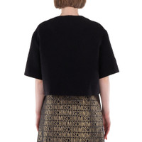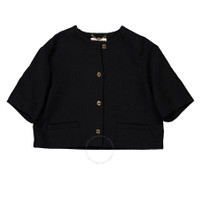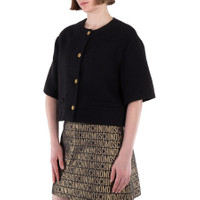 Moschino Ladies Outerwear. Fashion category: Coats & Jackets. SKU: 241E A0525-BLACK. Color: Black. Moschino Short-Sleeve Cropped Jacket. This jacket features a sleek, cropped silhouette with a boxy fit, crafted from a textured black fabric. It is designed with short, wide sleeves and a classic round neckline. The front is accented with bold, gold-tone buttons, adding a touch of elegance, while discreet flap pockets complete the sophisticated look. Made in Italy. GENERAL Brand Type: Designer Color: Black INFORMATION Brand: Moschino Gender: Womens Model: 241E A0525-BLACK DETAILS Category: Outerwear Apparel Type: Coats & Jackets ADDITIONAL INFO Jomashop Sku: -241EA0525BLACK Department: Clothing