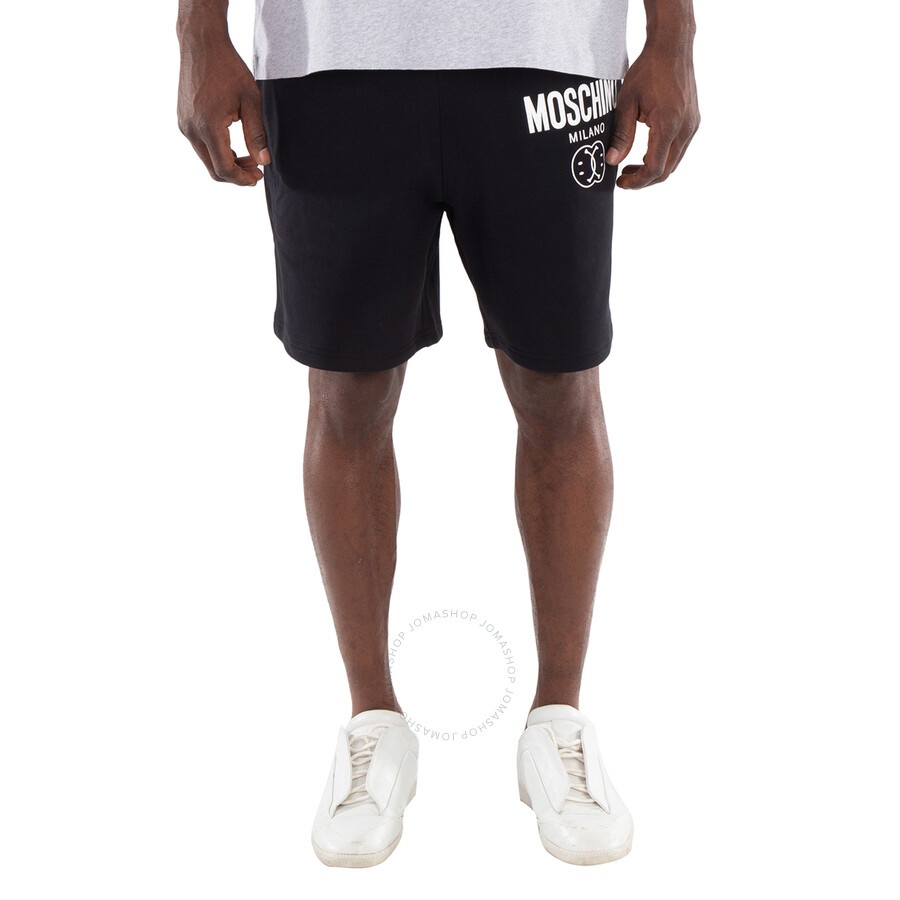 Moschino Men's Bottoms. Fashion category: Shorts. SKU: 241ZRJ0347-FANTASY PRINT BLACK 555. Color: Black. Moschino Smiley Logo Print Cotton Shorts. A shorts, in black and white, highlight a logo print on the front. They're crafted from organic cotton with tonal stitching, featuring an elasticated waistband and a straight leg design for comfort and style. Organic Cotton 100%. Made in Portugal. GENERAL Brand Type: Designer Color: Black INFORMATION Brand: Moschino Gender: Mens Model: 241ZRJ0347-FANTASY PRINT BLACK 555 DETAILS Category: Bottoms Apparel Type: Shorts Material: Cotton ADDITIONAL INFO Jomashop Sku: -Y-0C4794 Department: Clothing