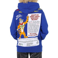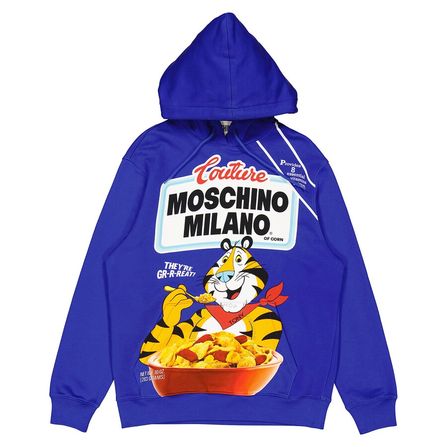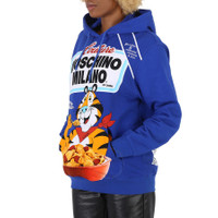Moschino Ladies Tops. Fashion category: Hoodies & Sweatshirts. SKU: A1777-1027-1299. Color: Blue. Moschino Tony the Tiger Graphic Hoodie in Blue. Start your day off gr-r-reat with this cotton-fleece graphic hoodie that provides eight essential Moschino vitamins and noniron comfort. Featuring a drawstring hood, kangaroo pocket, and ribbed cuffs and hem. 100% Cotton. Made in Italy. GENERAL Color: Blue INFORMATION Brand: Moschino Gender: Womens Model: A1777-1027-1299 DETAILS Category: Tops Apparel Type: Hoodies & Sweatshirts Material: Cotton ADDITIONAL INFO Jomashop Sku: -A177710271299 Department: Apparel