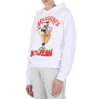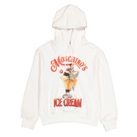 Moschino Ladies Tops. Fashion category: Hoodies & Sweatshirts. SKU: A1712-0528-1001. Color: White. Moschino White Ice Logo Print Cotton Hoodie. This organic cotton hoodie features long sleeves, dropped shoulders, a ribbed hem and cuffs, hood with adjustable drawcords and detailed with "Ice Cream" print and logo. GENERAL Color: White INFORMATION Brand: Moschino Gender: Womens Model: A1712-0528-1001 DETAILS Category: Tops Apparel Type: Hoodies & Sweatshirts ADDITIONAL INFO Jomashop Sku: -A171205281001 Department: Apparel