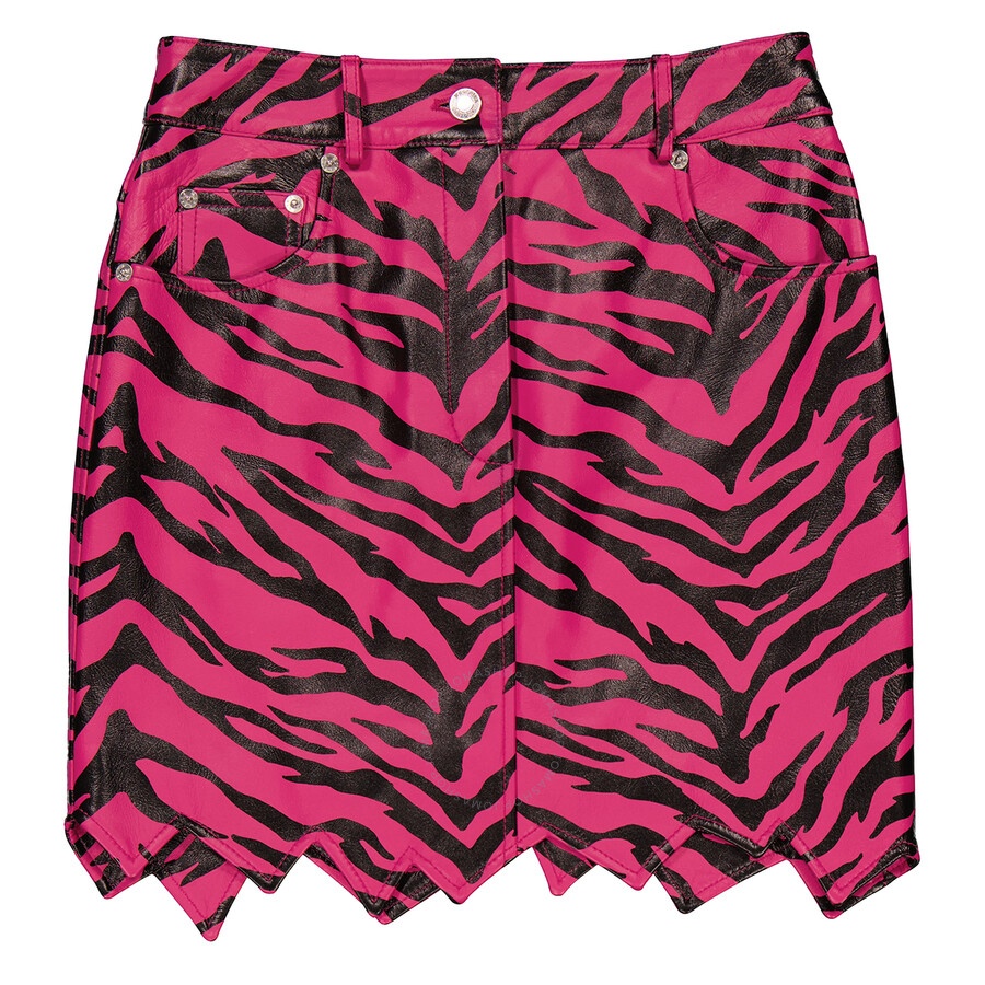 Moschino X The Flintstones Fuchsia Zebra Print Leather Skirt