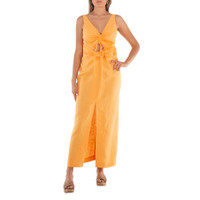 Nanushka Ladies Dresses. SKU: NW23PFDR01217. Color: Orange. Nanushka Draped Linen Midi Dress.This dress features draped and cut-out detailing, a V-neck, sleeveless design, a drawstring front with a front tie fastening, concealed rear zip fastening, and a front slit. GENERAL Color: Orange INFORMATION Brand: Nanushka Gender: Womens Model: NW23PFDR01217 DETAILS Category: Dresses Apparel Type: Casual Dresses ADDITIONAL INFO Jomashop Sku: -NW23PFDR01217ORANGE Department: Apparel