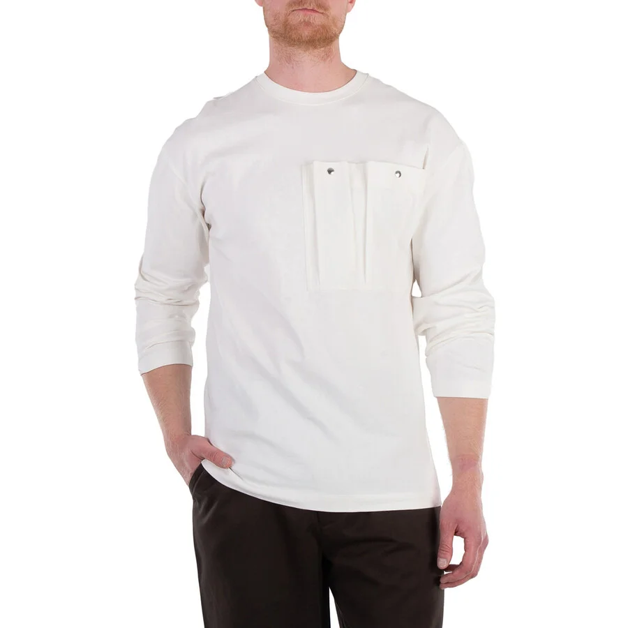 OAMC Men's Tops. Fashion category: T-Shirts & Henleys. SKU: 23A28OAJ02 COT00727 101. Color: Off-White. OAMC Men's Off-White Donner Organic Cotton T-Shirt. An organic cotton t-shirt featuring a jersey texture, a logo patch on the rear, silver-tone stud detailing, a crew neck, long sleeves, two chest patch pockets, and a straight hem. Organic Cotton 100% GENERAL Color: Off-White INFORMATION Brand: Oamc Gender: Mens Model: 23A28OAJ02 COT00727 101 DETAILS Category: Tops Apparel Type: T-Shirts & Henleys ADDITIONAL INFO Jomashop Sku: -A28OAJ02COT00727101 Department: Apparel