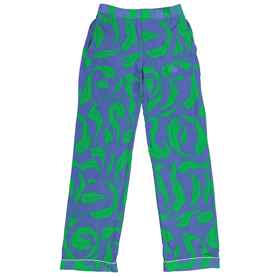 Off-White Illusion Pajama-Style Trousers in Blue/Green
