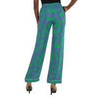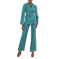 Brand: Off-White. SKU: OWCA082R20H150903040. Color: Blue/Green. Off-White Illusion Pajama-Style Trousers in Blue/Green. Featuring a high waist, an elasticated waistband, a hook and zip fastening, side slit pockets, rear welt pockets, a flared style, a regular length, green leaves printed all-over and piped seams to the cuffs. Made in Italy. GENERAL Color: Blue/Green INFORMATION Brand: Off-White Gender: Womens Model: OWCA082R20H150903040 DETAILS Category: Bottoms Apparel Type: Pants & Leggings ADDITIONAL INFO Jomashop Sku: -WCA082R20H150903040 Department: Apparel