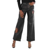 Brand: Off-White. SKU: OWJB007S20LEA0011000. Color: Black. Off-White Meteor Straight-Leg Trousers in Black. Featuring a high rise, belt loops, a button & zip fastening, side slit pockets, rear welt pockets, a straight leg, turn up hems, a regular length and holes at the side-leg. GENERAL Color: Black INFORMATION Brand: Off-White Gender: Womens Model: OWJB007S20LEA0011000 DETAILS Category: Bottoms Apparel Type: Pants & Leggings ADDITIONAL INFO Jomashop Sku: -WJB007S20LEA0011000 Department: Apparel