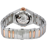 Stainless steel case with a stainless steel bracelet with 18kt sedna gold links. Fixed 18kt sedna gold bezel. Brown dial with rose gold-tone alpha-style skeleton hands and index hour markers. Minute markers around the outer rim. Dial Type: Analog. Date display at the 6 o'clock position. Omega calibre 8700 automatic movement with a 50-hour power reserve. Scratch resistant sapphire crystal. Pull / push crown. Transparent case back. Round case shape. Case size: 29 mm. Band width: 17.6 mm. Push button fold over clasp. Water resistant at 50 meters / 165 feet. Functions: date, hour, minute, second, co-axial escapement, chronometer, magnetic resistant. Luxury watch style. Watch label: Swiss Made. Omega Constellation Automatic Chronometer Brown Dial Ladies Watch 131.20.29.20.13.001. INFORMATION Brand: Omega Series: Constellation Collection Name: Constellation Gender: Womens Model: 131.20.29.20.13.001 Watch Label: Swiss Made Movement: Automatic Engine: Omega Calibre 8700 Power Reserve: 50 hours CASE Case Size: 29 mm Case Material: Stainless Steel Case Shape: Round Case Back: Transparent BAND Band Material: Stainless Steel with 18kt Sedna Gold links Band Type: Bracelet Band Color: Silver-tone Band Width: 17.6 mm Clasp: Push Button Fold Over DIAL Dial Color: Brown Type: Analog Crystal: Scratch Resistant Sapphire Hands: Rose Gold-tone Alpha-style Skeleton Dial Markers: Index Second Markers: Minute Markers around the outer rim Bezel: Fixed Bezel Color: Rose Gold-tone Bezel Material: 18kt Sedna Gold Crown: Pull / Push FEATURES Water Resistance: 50 meters / 165 feet Calendar: Date display at the 6 o'clock position Functions: Date, Hour, Minute, Second, Co-Axial Escapement, Chronometer, Magnetic Resistant Watch Features: Stainless Steel, Gold, Chronometer, Analog ADDITIONAL INFO Watch Style: Luxury Warranty: 4 Year Jomashop Warranty UPC Code: 7612586283581 Jomashop Sku: OM13120292013001 Department: Watches Category: Watches