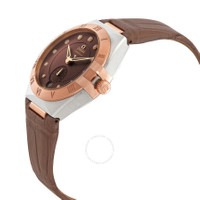 Rose gold-tone 18kt rose gold case with a brown alligator band. Fixed rose gold-tone 18kt rose gold bezel. Brown dial with rose gold-tone hands and diamond hour markers. Dial Type: Analog. Date display at the 6 o'clock position. One subdial displaying: small second. Omega Calibre 8802 Automatic movement, based upon Omega 8800, containing 35 Jewels, bitting at 25200 vph, and has a power reserve of approximately 55 hours. Scratch resistant sapphire crystal. Transparent see through case back. Round case shape, case size: 34 mm. Water resistant at 50 meters / 165 feet. Functions: date, hour, minute, small second, co-axial escapement, chronometer, magnetic resistant. Additional Info: original box, international warranty card, manual (complete accessories). Constellation Series. Luxury watch style. Watch label: Swiss Made. Omega Constellation Automatic Chronometer Diamond Brown Dial Ladies Watch 131.23.34.20.63.001. INFORMATION Brand: Omega Series: Constellation Collection Name: Constellation Gender: Womens Model: 131.23.34.20.63.001 Watch Label: Swiss Made Movement: Automatic Engine: Omega Calibre 8802 Power Reserve: 55 hours CASE Case Size: 34 mm Case Material: 18kt Rose Gold Case Shape: Round Case Back: Transparent See Through BAND Band Material: Alligator Band Type: Strap Band Color: Brown DIAL Dial Color: Brown Type: Analog Crystal: Scratch Resistant Sapphire Hands: Rose Gold-tone Dial Markers: Diamond Sub Dials: One - Small Second Bezel: Fixed Bezel Color: Rose Gold-tone Bezel Material: 18kt Rose Gold FEATURES Water Resistance: 50 meters / 165 feet Calendar: Date display at the 6 o'clock position Functions: Date, Hour, Minute, Small Second, Co-Axial Escapement, Chronometer, Magnetic Resistant Watch Features: Diamond, Gold, Chronometer, Analog, Alligator Leather ADDITIONAL INFO Watch Style: Luxury Warranty: 2 Year Jomashop Warranty Additional Info: Original Box, International Warranty Card, Manual (Complete Accessories) Jomashop Sku: OM13123342063001 Department: Watches Category: Watches