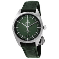 Stainless steel case with a green (alligator) leather strap. Fixed stainless steel bezel. Green dial with luminous silver-tone hands and index hour markers. Months display. Minute markers around the outer rim. Dial Type: Analog. Luminescent hands and markers. Date display at the 6 o'clock position. Omega calibre 8923 automatic movement, based upon Omega 8900, containing 39 Jewels, bitting at 25200 vph, and has a power reserve of approximately 55 hours. Scratch resistant sapphire crystal. Transparent case back. Round case shape. Case size: 41 mm. Band width: 20 mm. Tang clasp. Water resistant at 100 meters / 330 feet. Functions: annual calendar, date, hour, minute, second, co-axial escapement, chronometer. Additional Info: original box, manual (complete accessories). Constellation Series. Luxury watch style. Watch label: Swiss Made. Omega Constellation Automatic Chronometer Green Dial Men's Watch 130.33.41.22.10.001. GENERAL Box Type: Original Box CASE Case Size: 41 Case Material: Stainless Steel Case Shape: Round Case Back: Transparent BAND Band Material: (Alligator) Leather Band Type: Strap Band Color: Green Band Width: 20 mm Clasp: Tang DIAL Dial Color: Green Type: Analog Crystal: Scratch Resistant Sapphire Hands: Luminous Silver-tone Dial Markers: Index Second Markers: Months Display. Minute Markers around the outer rim Luminiscence: Hands and Markers Bezel: Fixed Bezel Color: Silver-tone Bezel Material: Stainless Steel INFORMATION Brand: Omega Series: Constellation Collection Name: Constellation Gender: Mens Model: 130.33.41.22.10.001 Watch Label: Swiss Made Movement: Automatic Engine: Omega Calibre 8923 Power Reserve: 55 hours FEATURES Water Resistance: 100 meters / 330 feet Calendar: Date display at the 6 o'clock position Functions: Annual Calendar, Date, Hour, Minute, Second, Co-Axial Escapement, Chronometer Watch Features: Month, Alligator Leather, Analog, Annual Calendar, Chronometer, Leather, Stainless Steel ADDITIONAL INFO Watch Style: Luxury Warranty: 2 Year Jomashop Warranty Additional Info: Original Box, Manual (Complete Accessories) Jomashop Sku: OM13033412210001 Department: Watches Category: Watches