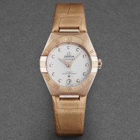 18kt rose gold case with a leather strap. Fixed 18kt rose gold bezel. Silver dial with 18kt rose gold hands and Roman numeral hour markers. Dial Type: Analog. Date display at the 6 o'clock position. Omega Calibre 8701 automatic movement with a 50-hour power reserve. Scratch resistant sapphire crystal. Pull / push crown. Transparent case back. Round case shape, case size: 29 mm. Band width: 17.6 mm. Water resistant at 50 meters / 165 feet. Functions: date, hour, minute, second, co-axial escapement, chronometer. Constellation Series. Luxury watch style. Watch label: Swiss Made. Omega Constellation Automatic Chronometer Silver Dial Ladies Watch 131.53.29.20.52.002. GENERAL Box Type: Original Box CASE Case Diameter: 29 mm Case Material: 18kt Rose Gold Case Shape: Round Case Back: Transparent BAND Band Material: Leather Band Type: Strap Band Width: 17.6 mm Clasp: Buckle DIAL Dial Color: Silver Type: Analog Crystal: Scratch Resistant Sapphire Hands: 18kt Rose Gold Dial Markers: Roman Numeral Bezel: Fixed Bezel Color: Rose Gold-tone Bezel Material: 18kt Rose Gold Crown: Pull / Push INFORMATION Brand: Omega Series: Constellation Collection Name: Constellation Gender: Womens Model: 131.53.29.20.52.002 Watch Label: Swiss Made Movement: Automatic Engine: Omega Calibre 8701 Power Reserve: 50 hours FEATURES Water Resistance: 50 meters / 165 feet Calendar: Date display at the 6 o'clock position Functions: Date, Hour, Minute, Second, Co-Axial Escapement, Chronometer Watch Features: Analog, Chronometer, Gold, Leather ADDITIONAL INFO Watch Style: Luxury Warranty: 2 Year Jomashop Warranty Jomashop Sku: OM13153292052002 Department: Watches Category: Watches