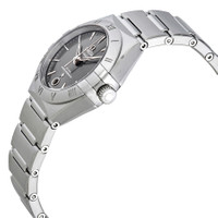 Stainless steel case with a stainless steel bracelet. Fixed stainless steel bezel. Grey dial with silver-tone skeleton arrow-shaped hands and index hour markers. Minute markers around the outer rim. Dial Type: Analog. Date display at the 6 o'clock position. Omega calibre 8700 automatic movement with a 50-hour power reserve. Scratch resistant sapphire crystal. Pull / push crown. Transparent case back. Round case shape. Case size: 29 mm. Band width: 17.6 mm. Push button fold over clasp. Water resistant at 50 meters / 165 feet. Functions: date, hour, minute, second. Luxury watch style. Watch label: Swiss Made. Omega Constellation Automatic Grey Dial Ladies Watch 131.10.29.20.06.001. INFORMATION Brand: Omega Series: Constellation Collection Name: Constellation Gender: Womens Model: 131.10.29.20.06.001 Watch Label: Swiss Made Movement: Automatic Engine: Omega Calibre 8700 Power Reserve: 50 hours CASE Case Size: 29 mm Case Material: Stainless Steel Case Shape: Round Case Back: Transparent BAND Band Material: Stainless Steel Band Type: Bracelet Band Color: Silver-tone Band Width: 17.6 mm Clasp: Push Button Fold Over DIAL Dial Color: Grey Type: Analog Crystal: Scratch Resistant Sapphire Hands: Silver-tone Skeleton Arrow-shaped Dial Markers: Index Second Markers: Minute Markers around the outer rim Bezel: Fixed Bezel Color: Silver-tone Bezel Material: Stainless Steel Crown: Pull / Push FEATURES Water Resistance: 50 meters / 165 feet Calendar: Date display at the 6 o'clock position Functions: Date, Hour, Minute, Second Watch Features: Stainless Steel, Analog ADDITIONAL INFO Watch Style: Luxury Warranty: 4 Year Jomashop Warranty UPC Code: 7612586283321 Jomashop Sku: OM13110292006001 Department: Watches Category: Watches
