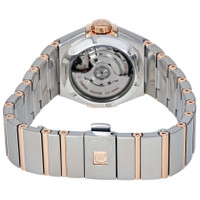 Stainless steel case with a stainless steel bracelet with 18kt rose gold bars. Fixed 18kt rose gold bezel set with diamonds. White mother of pearl dial with luminous rose gold-tone dauphine-style hands and diamond hour markers. Dial Type: Analog. Luminescent hands. Date display at the 6 o'clock position. Small seconds sub-dial at the 9 o'clock position. Omega calibre 8704 automatic movement, containing 28 Jewels, bitting at 25200 vph, and has a power reserve of approximately 50 hours. Scratch resistant sapphire crystal. Screw down crown. Transparent case back. Round case shape. Case size: 27 mm. Case thickness: 9 mm. Band width: 20 mm. Band length: 7 inches. Deployment clasp with a push button release. Water resistant at 100 meters / 330 feet. Functions: date, hour, minute, second, co-axial escapement, chronometer. Constellation Series. Luxury watch style. Watch label: Swiss Made. Omega Constellation Automatic Ladies Watch 127.25.27.20.55.001. INFORMATION Brand: Omega Series: Constellation Collection Name: Constellation Gender: Womens Model: 127.25.27.20.55.001 Watch Label: Swiss Made Movement: Automatic Engine: Omega Calibre 8704 Power Reserve: 50 hours CASE Case Size: 27 mm Case Thickness: 9 mm Case Material: Stainless Steel Case Shape: Round Case Back: Transparent BAND Band Material: Stainless Steel and 18kt Rose Gold Bars Band Type: Bracelet Band Color: Silver-tone Band Length: 7 inches Band Width: 20 mm Clasp: Deployment with Push Button Release DIAL Dial Color: White Mother of Pearl Type: Analog Crystal: Scratch Resistant Sapphire Hands: Luminous Rose Gold-tone Dauphine-style Dial Markers: Diamond Sub Dials: One - Small Second Luminiscence: Hands Bezel: Fixed Bezel Material: 18kt Rose Gold set with Diamonds Crown: Screw Down FEATURES Water Resistance: 100 meters / 330 feet Calendar: Date display at the 6 o'clock position Functions: Date, Hour, Minute, Second, Co-Axial Escapement, Chronometer Watch Features: Diamond, Stainless Steel, Gold, Chronometer, Analog ADDITIONAL INFO Watch Style: Luxury Warranty: 4 Year Jomashop Warranty UPC Code: 7612586264061 Jomashop Sku: OM12725272055001 Department: Watches Category: Watches