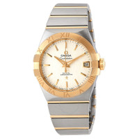 Stainless steel case with a stainless steel bracelet with 18kt yellow gold bars. Fixed 18kt yellow gold bezel. White opaline dial with luminous yellow gold dauphine-style hands and index hour markers. Minute markers around the outer rim. Dial Type: Analog. Luminescent hands and markers. Date display at the 3 o'clock position. Omega calibre 8500 automatic movement, containing 39 Jewels, composed of 202 parts, bitting at 25200 vph, and has a power reserve of approximately 60 hours. Scratch resistant sapphire crystal. Pull / push crown. Transparent case back. Round case shape. Case size: 38 mm. Case thickness: 12 mm. Band width: 25 mm. Butterfly clasp. Water resistant at 100 meters / 330 feet. Functions: date, hour, minute, second, co-axial escapement, chronometer. Constellation Series. Dress watch style. Watch label: Swiss Made. Omega Constellation Automatic White Opaline Men's Dial Watch 123.20.38.21.02.006. GENERAL Box Type: Original Box CASE Case Size: 38 Case Thickness: 12 mm Case Material: Stainless Steel Case Shape: Round Case Back: Transparent BAND Band Material: Stainless Steel with 18kt Yellow Gold Bars Band Type: Bracelet Band Color: Silver-tone Band Width: 25 mm Clasp: Butterfly DIAL Dial Color: White Opaline Type: Analog Crystal: Scratch Resistant Sapphire Hands: Luminous Yellow Gold Dauphine-style Dial Markers: Index Second Markers: Minute Markers around the outer rim Luminiscence: Hands and Markers Bezel: Fixed Bezel Color: 18kt Yellow Bezel Material: 18kt Yellow Gold Crown: Pull / Push INFORMATION Brand: Omega Series: Constellation Collection Name: Constellation Gender: Mens Model: 123.20.38.21.02.006 Watch Label: Swiss Made Movement: Automatic Engine: Omega Calibre 8500 Power Reserve: 60 hours FEATURES Water Resistance: 100 meters / 330 feet Calendar: Date display at the 3 o'clock position Functions: Date, Hour, Minute, Second, Co-Axial Escapement, Chronometer Watch Features: Analog, Chronometer, Gold, Stainless Steel ADDITIONAL INFO Watch Style: Dress Warranty: 4 Year Jomashop Warranty UPC Code: 7612586268496 Jomashop Sku: OM12320382102006 Department: Watches Category: Watches