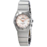 Stainless steel case with a stainless steel bracelet. Fixed stainless steel bezel. Silver dial with rose gold hands and diamond hour markers. Dial Type: Analog. Omega calibre 4061 quartz movement. Scratch resistant sapphire crystal. Push / pull crown. Solid case back. Round case shape. Case size: 25 mm. Band width: 15.9 mm. Butterfly clasp. Water resistant at 30 meters / 100 feet. Functions: hour, minute. Dress watch style. Watch label: Swiss Made. Omega Constellation Manhattan Diamond Silver Dial Ladies Watch 131.10.25.60.52.001. INFORMATION Brand: Omega Series: Constellation Manhattan Collection Name: Constellation Manhattan Gender: Womens Model: 131.10.25.60.52.001 Watch Label: Swiss Made Movement: Quartz Engine: Omega Calibre 4061 CASE Case Size: 25 mm Case Material: Stainless Steel Case Shape: Round Case Back: Solid BAND Band Material: Stainless Steel Band Type: Bracelet Band Color: Silver-tone Band Width: 15.9 mm Clasp: Butterfly DIAL Dial Color: Silver Type: Analog Crystal: Scratch Resistant Sapphire Hands: Rose Gold Dial Markers: Diamond Bezel: Fixed Bezel Color: Silver-tone Bezel Material: Stainless Steel Crown: Pull / Push FEATURES Water Resistance: 30 meters / 100 feet Functions: Hour, Minute Watch Features: Diamond, Stainless Steel, Gold, Analog ADDITIONAL INFO Watch Style: Dress Warranty: 4 Year Jomashop Warranty UPC Code: 7612586282119 Jomashop Sku: OM13110256052001 Department: Watches Category: Watches