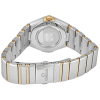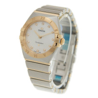Gold-tone stainless steel case with a two-tone stainless steel with 18kt yellow gold bracelet. Fixed 18kt yellow gold bezel. White mother of pearl dial with gold-tone hands and diamond hour markers. Dial Type: Analog. Omega Calibre 4061 quartz movement. Scratch resistant sapphire crystal. Screw down crown. Solid case back. Round case shape. Case size: 28 mm. Band width: 17.5 mm. Butterfly clasp. Water resistant at 30 meters / 100 feet. Functions: hour, minute. Luxury watch style. Watch label: Swiss Made. Omega Constellation Manhattan Quartz Diamond White Mother of Pearl Dial Ladies Watch 131.20.28.60.55.002. INFORMATION Brand: Omega Series: Constellation Manhattan Collection Name: Constellation Manhattan Gender: Womens Model: 131.20.28.60.55.002 Watch Label: Swiss Made Movement: Quartz Engine: Omega Calibre 4061 CASE Case Size: 28 mm Case Material: Stainless Steel Case Shape: Round Case Back: Solid BAND Band Material: Stainless Steel with 18kt Yellow Gold Band Type: Bracelet Band Color: Two-tone Band Width: 17.5 mm Clasp: Butterfly DIAL Dial Color: White Mother of Pearl Type: Analog Crystal: Scratch Resistant Sapphire Hands: Gold-tone Dial Markers: Diamond Bezel: Fixed Bezel Material: 18kt Yellow Gold Crown: Screw Down FEATURES Water Resistance: 30 meters / 100 feet Functions: Hour, Minute Watch Features: Diamond, Stainless Steel, Gold, Analog ADDITIONAL INFO Watch Style: Luxury Warranty: 4 Year Jomashop Warranty UPC Code: 7612586283031 Jomashop Sku: OM13120286055002 Department: Watches Category: Watches
