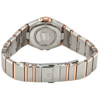 Stainless steel case with a stainless steel bracelet with 18kt sedna gold bars. Fixed 18kt sedna gold bezel. White silvery dial with rose gold-tone alpha-style hands and diamond hour markers. Dial Type: Analog. Omega Calibre 4061 quartz movement. Scratch resistant sapphire crystal. Pull / push crown. Solid case back. Round case shape. Case size: 25 mm. Case thickness: 9 mm. Band width: 15.9 mm. Fold over clasp. Water resistant at 30 meters / 100 feet. Functions: hour, minute. Constellation Series. Luxury watch style. Watch label: Swiss Made. Omega Constellation Quartz Diamond White Silvery Dial Ladies Watch 131.20.25.60.52.001. INFORMATION Brand: Omega Series: Constellation Collection Name: Constellation Gender: Womens Model: 131.20.25.60.52.001 Watch Label: Swiss Made Movement: Quartz Engine: Omega Calibre 4061 CASE Case Size: 25 mm Case Thickness: 9 mm Case Material: Stainless Steel Case Shape: Round Case Back: Solid BAND Band Material: Stainless Steel with 18kt Sedna Gold Bars Band Type: Bracelet Band Color: Two-tone (Silver-tone and Rose Gold-tone) Band Width: 15.9 mm Clasp: Fold Over DIAL Dial Color: White Silvery Type: Analog Crystal: Scratch Resistant Sapphire Hands: Rose Gold-tone Alpha-style Dial Markers: Diamond Bezel: Fixed Bezel Material: 18kt Sedna Gold Crown: Pull / Push FEATURES Water Resistance: 30 meters / 100 feet Functions: Hour, Minute Watch Features: Diamond, Stainless Steel, Gold, Analog ADDITIONAL INFO Watch Style: Luxury Warranty: 4 Year Jomashop Warranty UPC Code: 7612586282300 Jomashop Sku: OM13120256052001 Department: Watches Category: Watches