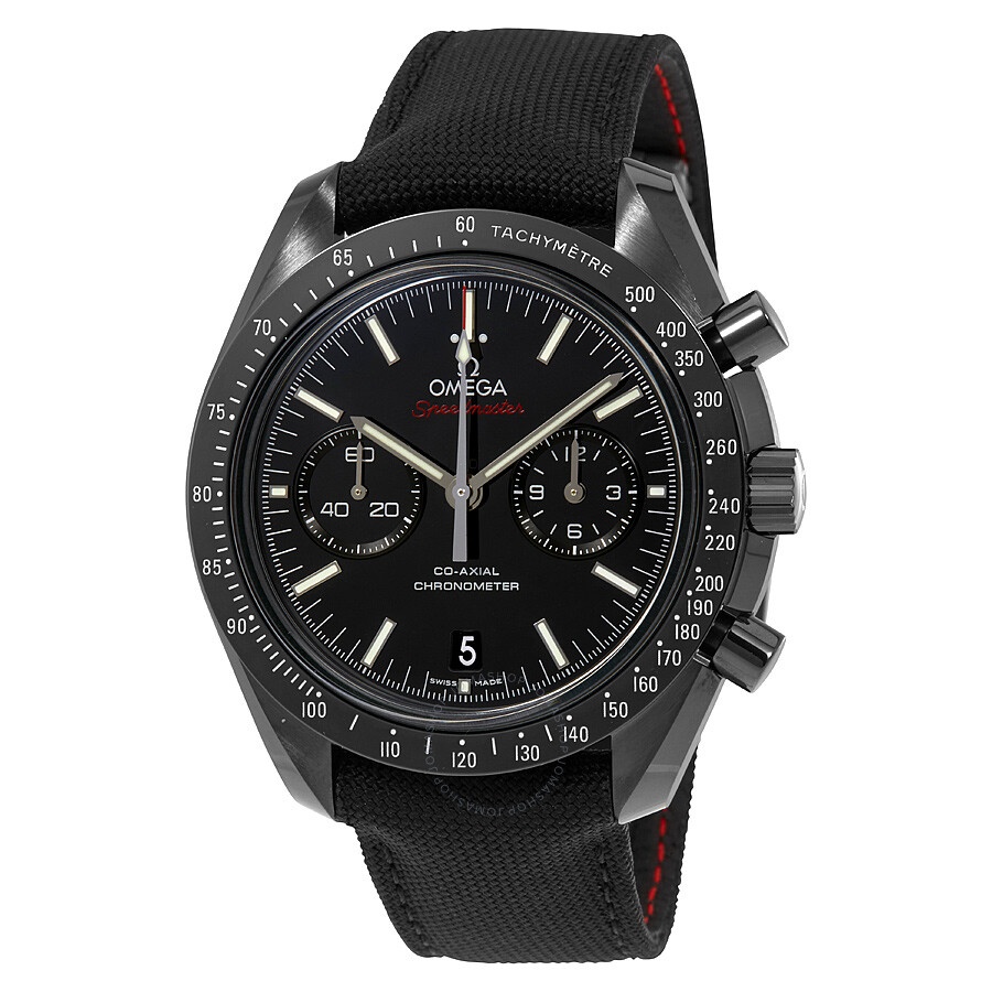 Black ceramic case with a black nylon strap. Fixed black ceramic bezel showing tachymeter markings. Black dial with luminous silver-tone hands and index hour markers. Minute markers around the outer rim. Dial Type: Analog. Luminescent hands and markers. Date display at the 6 o'clock position. Chronograph - two sub-dials displaying: 60 second and 24 hour. Omega calibre 9300 automatic movement, containing 54 Jewels, composed of 337 parts, bitting at 28800 vph, and has a power reserve of approximately 60 hours. Scratch resistant sapphire crystal. Pull / Push crown. Transparent case back. Round case shape. Case size: 44.25 mm. Case thickness: 16.5 mm. Band width: 21 mm. Fold over clasp with a safety release. Water resistant at 50 meters / 165 feet. Functions: chronograph, date, hour, minute, second, chronometer, tachymeter. Speedmaster Series. Luxury watch style. Watch label: Swiss Made. Omega Dark Side of the Moon Automatic Black Dial Men's Watch 311.92.44.51.01.007. INFORMATION Brand: Omega Series: Speedmaster Collection Name: Speedmaster Gender: Mens Model: 311.92.44.51.01.007 Watch Label: Swiss Made Movement: Automatic Engine: Omega Calibre 9300 Power Reserve: 60 hours CASE Case Size: 44.25 mm Case Thickness: 16.5 mm Case Material: Ceramic Case Shape: Round Case Back: Transparent BAND Band Material: Nylon Band Type: Strap Band Color: Black Band Width: 21 mm Clasp: Fold Over with Safety Release DIAL Dial Color: Black Type: Analog Crystal: Scratch Resistant Sapphire Hands: Luminous Silver-tone Dial Markers: Index Second Markers: Minute Markers around the outer rim Sub Dials: Two - 60 Second and 24 Hour Luminiscence: Hands and Markers Bezel: Fixed Bezel Color: Black Bezel Material: Ceramic showing Tachymeter Markings Crown: Pull / Push FEATURES Water Resistance: 50 meters / 165 feet Calendar: Date display at the 6 o'clock position Functions: Chronograph, Date, Hour, Minute, Second, Chronometer, Tachymeter Watch Features: Chronograph, Ceramic, Chronometer, Analog ADDITIONAL INFO Watch Style: Luxury Warranty: 4 Year Jomashop Warranty UPC Code: 7612586258534 Jomashop Sku: OM31192445101007 Department: Watches Category: Watches