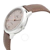 Silver-tone stainless steel case with a brown leather strap. Fixed silver-tone stainless steel bezel. Grey dial with rose gold-tone hands and diamond hour markers. Minute markers around the outer rim. Dial Type: Analog. Date display at the 6 o'clock position. Omega Calibre 8800 Automatic movement, containing 35 Jewels, bitting at 25200 vph, and has a power reserve of approximately 55 hours. Scratch resistant sapphire crystal. Transparent see through case back. Round case shape, case size: 34 mm. Water resistant at 30 meters / 100 feet. Functions: date, hour, minute, second, co-axial escapement, chronometer, magnetic resistant. Additional Info: original box, international warranty card, manual (complete accessories). De Ville Series. Luxury watch style. Watch label: Swiss Made. Omega De Ville Automatic Chronometer Diamond Grey Dial Ladies Watch 434.13.34.20.52.002. INFORMATION Brand: Omega Series: De Ville Collection Name: De Ville Gender: Womens Model: 434.13.34.20.52.002 Watch Label: Swiss Made Movement: Automatic Engine: Omega Calibre 8800 Power Reserve: 55 hours CASE Case Size: 34 mm Case Material: Stainless Steel Case Shape: Round Case Back: Transparent See Through BAND Band Material: Leather Band Type: Strap Band Color: Brown DIAL Dial Color: Grey Type: Analog Crystal: Scratch Resistant Sapphire Hands: Rose Gold-tone Dial Markers: Diamond Second Markers: Minute Markers around the outer rim Bezel: Fixed Bezel Color: Silver-tone Bezel Material: Stainless Steel FEATURES Water Resistance: 30 meters / 100 feet Calendar: Date display at the 6 o'clock position Functions: Date, Hour, Minute, Second, Co-Axial Escapement, Chronometer, Magnetic Resistant Watch Features: Analog, Chronometer, Gold, Leather, Stainless Steel, Diamond ADDITIONAL INFO Watch Style: Luxury Warranty: 2 Year Jomashop Warranty Additional Info: Original Box, International Warranty Card, Manual (Complete Accessories) Jomashop Sku: OM43413342052002 Department: Watches Category: Watches