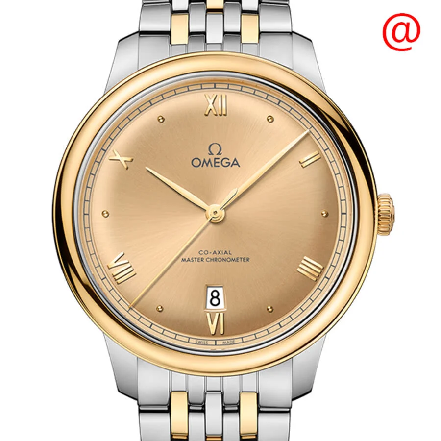 Silver-tone stainless steel case with a two-tone (silver-tone and yellow gold-tone) stainless steel and 18kt yellow gold bracelet. Fixed yellow gold-tone 18kt yellow gold bezel. Gold-tone dial with yellow gold-tone hands and Roman numeral hour markers. Minute markers around the outer rim. Dial Type: Analog. Date display at the 6 o'clock position. Omega Calibre 8800 Automatic movement, containing 35 Jewels, bitting at 25200 vph, and has a power reserve of approximately 55 hours. Scratch resistant sapphire crystal. Transparent see through case back. Round case shape, case size: 40 mm. Fold over clasp with a safety release. Water resistant at 30 meters / 100 feet. Functions: date, hour, minute, second, co-axial escapement, chronometer, magnetic resistant. De Ville Series. Luxury watch style. Watch label: Swiss Made. Omega De Ville Automatic Chronometer Gold Dial Men's Watch 434.20.40.20.08.001. GENERAL Box Type: Original Box CASE Case Material: Stainless Steel Case Shape: Round Case Back: Transparent See Through BAND Band Material: Stainless Steel and 18kt Yellow Gold Band Type: Bracelet Band Color: Two-tone (Silver-tone and Yellow Gold-tone) Clasp: Fold Over with Safety Release DIAL Dial Color: Gold-tone Type: Analog Crystal: Scratch Resistant Sapphire Hands: Yellow Gold-tone Dial Markers: Roman Numeral Second Markers: Minute Markers around the outer rim Bezel: Fixed Bezel Color: Yellow Gold-tone Bezel Material: 18kt Yellow Gold INFORMATION Brand: Omega Series: De Ville Collection Name: De Ville Gender: Mens Model: 434.20.40.20.08.001 Watch Label: Swiss Made Movement: Automatic Engine: Omega Calibre 8800 Power Reserve: 55 hours FEATURES Water Resistance: 30 meters / 100 feet Calendar: Date display at the 6 o'clock position Functions: Date, Hour, Minute, Second, Co-Axial Escapement, Chronometer, Magnetic Resistant Watch Features: Analog, Chronometer, Gold, Stainless Steel ADDITIONAL INFO Watch Style: Luxury Warranty: 2 Year Jomashop Warranty Jomashop Sku: OM43420402008001 Department: Watches