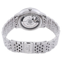 Silver-tone stainless steel case and bracelet. Fixed silver-tone stainless steel bezel. Grey dial with rose gold-tone hands and Roman numeral hour markers. Minute markers around the outer rim. Dial Type: Analog. Date display at the 6 o'clock position. Omega Calibre 8800 Automatic movement, containing 35 Jewels, bitting at 25200 vph, and has a power reserve of approximately 55 hours. Scratch resistant sapphire crystal. Transparent see through case back. Round case shape, case size: 40 mm. Fold over clasp with a safety release. Water resistant at 30 meters / 100 feet. Functions: date, hour, minute, second, co-axial escapement, chronometer, magnetic resistant. Additional Info: original box, international warranty card, manual (complete accessories). De Ville Series. Luxury watch style. Watch label: Swiss Made. Omega De Ville Automatic Chronometer Grey Dial Men's Watch 434.10.40.20.06.001. GENERAL Box Type: Original Box CASE Case Diameter: 40 mm Case Material: Stainless Steel Case Shape: Round Case Back: Transparent See Through BAND Band Material: Stainless Steel Band Type: Bracelet Band Color: Silver-tone Clasp: Fold Over with Safety Release DIAL Dial Color: Grey Type: Analog Crystal: Scratch Resistant Sapphire Hands: Rose Gold-tone Dial Markers: Roman Numeral Second Markers: Minute Markers around the outer rim Bezel: Fixed Bezel Color: Silver-tone Bezel Material: Stainless Steel INFORMATION Brand: Omega Series: De Ville Collection Name: De Ville Gender: Mens Model: 434.10.40.20.06.001 Watch Label: Swiss Made Movement: Automatic Engine: Omega Calibre 8800 Power Reserve: 55 hours FEATURES Water Resistance: 30 meters / 100 feet Calendar: Date display at the 6 o'clock position Functions: Date, Hour, Minute, Second, Co-Axial Escapement, Chronometer, Magnetic Resistant Watch Features: Analog, Chronometer, Gold, Stainless Steel ADDITIONAL INFO Watch Style: Luxury Warranty: 2 Year Jomashop Warranty Additional Info: Original Box, Manual (Complete Accessories) Jomashop Sku: OM43410402006001 Department: Watches Category: Watches