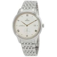 Silver-tone stainless steel case and bracelet. Fixed silver-tone stainless steel bezel. Silver-tone dial with black hands and Roman numeral hour markers. Minute markers around the outer rim. Dial Type: Analog. Date display at the 3 o'clock position. One subdial displaying: small second. Omega Calibre 8802 Automatic movement, based upon Omega 8800, containing 35 Jewels, bitting at 25200 vph, and has a power reserve of approximately 55 hours. Scratch resistant sapphire crystal. Transparent see through case back. Round case shape, case size: 41 mm. Fold over clasp with a safety release. Water resistant at 30 meters / 100 feet. Functions: date, hour, minute, small second, co-axial escapement, chronometer, magnetic resistant. Additional Info: original box, international warranty card, manual (complete accessories). De Ville Series. Luxury watch style. Watch label: Swiss Made. Omega De Ville Automatic Chronometer Silver Dial Men's Watch 434.10.41.20.02.001. INFORMATION Brand: Omega Series: De Ville Collection Name: De Ville Gender: Mens Model: 434.10.41.20.02.001 Watch Label: Swiss Made Movement: Automatic Engine: Omega Calibre 8802 Power Reserve: 55 hours CASE Case Size: 41 mm Case Material: Stainless Steel Case Shape: Round Case Back: Transparent See Through BAND Band Material: Stainless Steel Band Type: Bracelet Band Color: Silver-tone Clasp: Fold Over with Safety Release DIAL Dial Color: Silver-tone Type: Analog Crystal: Scratch Resistant Sapphire Hands: Black Dial Markers: Roman Numeral Second Markers: Minute Markers around the outer rim Sub Dials: One - Small Second Bezel: Fixed Bezel Color: Silver-tone Bezel Material: Stainless Steel FEATURES Water Resistance: 30 meters / 100 feet Calendar: Date display at the 3 o'clock position Functions: Date, Hour, Minute, Small Second, Co-Axial Escapement, Chronometer, Magnetic Resistant Watch Features: Stainless Steel, Chronometer, Analog ADDITIONAL INFO Watch Style: Luxury Warranty: 2 Year Jomashop Warranty Additional Info: Original Box, International Warranty Card, Manual (Complete Accessories) Jomashop Sku: OM43410412002001 Department: Watches Category: Watches