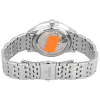 Silver-tone stainless steel case and bracelet. Fixed silver-tone stainless steel bezel. White dial with rose gold-tone hands and Roman numeral hour markers. Minute markers around the outer rim. Dial Type: Analog. Date display at the 6 o'clock position. Omega Calibre 8800 Automatic movement, containing 35 Jewels, bitting at 25200 vph, and has a power reserve of approximately 55 hours. Scratch resistant sapphire crystal. Transparent see through case back. Round case shape, case size: 34 mm. Fold over clasp with a safety release. Water resistant at 30 meters / 100 feet. Functions: date, hour, minute, second, co-axial escapement, chronometer, magnetic resistant. Additional Info: original box, international warranty card, manual (complete accessories). De Ville Series. Luxury watch style. Watch label: Swiss Made. Omega De Ville Automatic Chronometer White Dial Ladies Watch 434.10.34.20.05.001. INFORMATION Brand: Omega Series: De Ville Collection Name: De Ville Gender: Womens Model: 434.10.34.20.05.001 Watch Label: Swiss Made Movement: Automatic Engine: Omega Calibre 8800 Power Reserve: 55 hours CASE Case Size: 34 mm Case Material: Stainless Steel Case Shape: Round Case Back: Transparent See Through BAND Band Material: Stainless Steel Band Type: Bracelet Band Color: Silver-tone Clasp: Fold Over with Safety Release DIAL Dial Color: White Type: Analog Crystal: Scratch Resistant Sapphire Hands: Rose Gold-tone Dial Markers: Roman Numeral Second Markers: Minute Markers around the outer rim Bezel: Fixed Bezel Color: Silver-tone Bezel Material: Stainless Steel FEATURES Water Resistance: 30 meters / 100 feet Calendar: Date display at the 6 o'clock position Functions: Date, Hour, Minute, Second, Co-Axial Escapement, Chronometer, Magnetic Resistant Watch Features: Stainless Steel, Gold, Chronometer, Analog ADDITIONAL INFO Watch Style: Luxury Warranty: 2 Year Jomashop Warranty Additional Info: Original Box, International Warranty Card, Manual (Complete Accessories) Jomashop Sku: OM43410342005001 Department: Watches Category: Watches