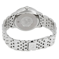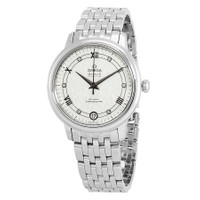 Stainless steel case with a stainless steel bracelet. Fixed stainless steel bezel. Silver dial with black dauphine-style hands and alternating diamond and Roman numeral hour markers. Minute markers around the outer rim. Dial Type: Analog. Date display at the 6 o'clock position. Omega calibre 2500 automatic movement, based upon ETA 2892-A2, containing 27 Jewels, bitting at 25200 vph, and has a power reserve of approximately 48 hours. Scratch resistant sapphire crystal. Screw down crown. Solid case back. Round case shape. Case size: 32.7 mm. Band width: 16 mm. Fold over clasp. Water resistant at 30 meters / 100 feet. Functions: date, hour, minute, second, co-axial escapement, chronometer. Additional Info: diamond set of 6 on dial. Dress watch style. Watch label: Swiss Made. Omega De Ville Automatic Diamond Silver Dial Ladies Watch 424.10.33.20.52.002. INFORMATION Brand: Omega Series: De Ville Collection Name: De Ville Gender: Womens Model: 424.10.33.20.52.002 Watch Label: Swiss Made Movement: Automatic Engine: Omega Calibre 2500 Power Reserve: 48 hours CASE Case Size: 32.7 mm Case Material: Stainless Steel Case Shape: Round Case Back: Solid BAND Band Material: Stainless Steel Band Type: Bracelet Band Color: Silver-tone Band Width: 16 mm Clasp: Fold Over DIAL Dial Color: Silver Type: Analog Crystal: Scratch Resistant Sapphire Hands: Black Dauphine-style Dial Markers: Diamond and Roman Numeral Second Markers: Minute Markers around the outer rim Bezel: Fixed Bezel Color: Silver-tone Bezel Material: Stainless Steel Crown: Screw Down FEATURES Water Resistance: 30 meters / 100 feet Calendar: Date display at the 6 o'clock position Functions: Date, Hour, Minute, Second, Co-Axial Escapement, Chronometer Watch Features: Diamond, Stainless Steel, Chronometer, Analog ADDITIONAL INFO Watch Style: Dress Warranty: 4 Year Jomashop Warranty UPC Code: 7612586285615 Additional Info: Diamond set of 6 on Dial Jomashop Sku: OM42410332052002 Department: Watches Category: Watches
