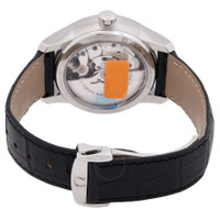 Silver-tone stainless steel case with a black alligator/crocodile leather strap. Fixed stainless steel bezel. Silver dial with 18k white gold hands and Roman numeral hour markers. Dial Type: Analog. Day of the week and date display at the 3 o'clock position. Omega Calibre 8902 Automatic movement, based upon Omega 8900, containing 39 Jewels, bitting at 25200 vph, and has a power reserve of approximately 60 hours. Scratch resistant sapphire crystal. Pull / push crown. Transparent see through case back. Round case shape, case size: 41 mm. Band width: 20 mm. Push button deployant buckle clasp. Water resistant at 100 meters / 330 feet. Functions: date, day, hour, minute, second. De Ville Automatic Series. Luxury watch style. Watch label: Swiss Made. Omega De Ville Automatic Silver Dial Men's Watch 433.13.41.22.02.001. GENERAL Box Type: Original Box CASE Case Diameter: 41 mm Case Material: Stainless Steel Case Shape: Round Case Back: Transparent See Through BAND Band Material: Alligator/Crocodile Leather Band Type: Strap Band Color: Black Band Width: 20 mm Clasp: Push Button Deployant Buckle DIAL Dial Color: Silver Type: Analog Crystal: Scratch Resistant Sapphire Hands: 18K White Gold Dial Markers: Roman Numeral Bezel: Fixed Bezel Material: Stainless Steel Crown: Pull / Push INFORMATION Brand: Omega Series: De Ville Collection Name: De Ville Automatic Gender: Mens Model: 433.13.41.22.02.001 Watch Label: Swiss Made Movement: Automatic Engine: Omega Calibre 8902 FEATURES Water Resistance: 100 meters / 330 feet Calendar: Day of the Week and Date display at the 3 o'clock position Functions: Date, Day, Hour, Minute, Second Watch Features: Alligator Leather, Analog, Gold, Leather, Stainless Steel ADDITIONAL INFO Watch Style: Luxury Warranty: 4 Year Jomashop Warranty UPC Code: 785449161443 Jomashop Sku: OM43313412202001 Department: Watches Category: Watches