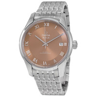 Silver-tone stainless steel case and bracelet. Fixed silver-tone stainless steel bezel. Bronze dial with silver-tone hands and Roman numeral hour markers. Dial Type: Analog. Date display at the 3 o'clock position. Omega Calibre 8900 Automatic movement, based upon Omega 8500, containing 39 Jewels, bitting at 25200 vph, and has a power reserve of approximately 60 hours. Scratch resistant sapphire crystal. Transparent case back. Round case shape, case size: 41 mm. Band width: 20 mm. Water resistant at 100 meters / 330 feet. Functions: date, hour, minute, second, co-axial escapement, chronometer. De Ville Hour Vision Series. Luxury watch style. Watch label: Swiss Made. Omega De Ville Hour Vision Automatic Chronometer Bronze Dial Men's Watch 433.10.41.21.10.001. INFORMATION Brand: Omega Series: De Ville Hour Vision Collection Name: De Ville Hour Vision Gender: Mens Model: 433.10.41.21.10.001 Watch Label: Swiss Made Movement: Automatic Engine: Omega Calibre 8900 Power Reserve: 60 hours CASE Case Size: 41 mm Case Material: Stainless Steel Case Shape: Round Case Back: Transparent BAND Band Material: Stainless Steel Band Type: Bracelet Band Color: Silver-tone Band Width: 20 mm DIAL Dial Color: Bronze Type: Analog Crystal: Scratch Resistant Sapphire Hands: Silver-tone Dial Markers: Roman Numeral Bezel: Fixed Bezel Color: Silver-tone Bezel Material: Stainless Steel FEATURES Water Resistance: 100 meters / 330 feet Calendar: Date display at the 3 o'clock position Functions: Date, Hour, Minute, Second, Co-Axial Escapement, Chronometer Watch Features: Stainless Steel, Chronometer, Analog ADDITIONAL INFO Watch Style: Luxury Warranty: 4 Year Jomashop Warranty UPC Code: 785449161375 Jomashop Sku: OM43310412110001 Department: Watches Category: Watches