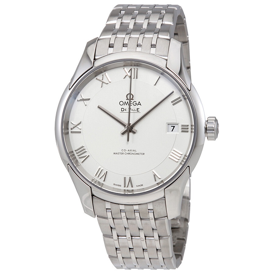 Stainless steel case with a stainless steel bracelet. Fixed stainless steel bezel. White dial with silver-tone hands and Roman numeral hour markers. Dial Type: Analog. Date display at the 3 o'clock position. Omega calibre 8900 automatic movement, based upon Omega 8500, containing 39 Jewels, bitting at 25200 vph, and has a power reserve of approximately 60 hours. Scratch resistant sapphire crystal. Pull / push crown. Transparent case back. Round case shape. Case size: 41 mm. Band width: 20 mm. Deployment clasp. Water resistant at 100 meters / 330 feet. Functions: date, hour, minute, second, chronometer. De Ville Hour Vision Series. Luxury watch style. Watch label: Swiss Made. Omega De Ville Hour Vision White Dial Stainless Steel Men's Automatic Watch 43310412102001. INFORMATION Brand: Omega Series: De Ville Hour Vision Collection Name: De Ville Hour Vision Gender: Mens Model: 433.10.41.21.02.001 Watch Label: Swiss Made Movement: Automatic Engine: Omega Calibre 8900 Power Reserve: 60 hours CASE Case Size: 41 mm Case Material: Stainless Steel Case Shape: Round Case Back: Transparent BAND Band Material: Stainless Steel Band Type: Bracelet Band Color: Silver-tone Band Width: 20 mm Clasp: Deployment DIAL Dial Color: White Type: Analog Crystal: Scratch Resistant Sapphire Hands: Silver-tone Dial Markers: Roman Numeral Bezel: Fixed Bezel Color: Silver-tone Bezel Material: Stainless Steel Crown: Pull / Push FEATURES Water Resistance: 100 meters / 330 feet Calendar: Date display at the 3 o'clock position Functions: Date, Hour, Minute, Second, Chronometer Watch Features: Stainless Steel, Chronometer, Analog ADDITIONAL INFO Watch Style: Luxury Warranty: 4 Year Jomashop Warranty UPC Code: 7612586257292 Jomashop Sku: OM43310412102001 Department: Watches Category: Watches