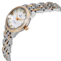 Stainless steel case with a two-tone (silver-tone and rose gold-tone) stainless steel and bracelet. Fixed 18kt rose gold bezel set with diamonds. Mother of pearl dial with rose gold-tone hands and diamond hour markers. Roman numerals mark the 3, 6, 9 and 12 o'clock posirion. Dial Type: Analog. Omega calibre 1376 quartz movement. Scratch resistant sapphire crystal. Pull / push crown. Solid case back. Case size: 24.4 mm. Round case shape. Band width: 12 mm. Fold over clasp. Water resistant at 30 meters / 100 feet. Functions: hour, minute. Luxury watch style. Watch label: Swiss Made. Item Variations: 424 25 24 60 55 002, 424-25-24-60-55-002, 424/25/24/60/55/002, 42425246055002. Omega De Ville Prestige Mother of Pearl Dial Ladies Watch 424.25.24.60.55.002. CASE Case Size: 24 Case Material: Stainless Steel Case Shape: Round Case Back: Solid BAND Band Material: Stainless Steel and Band Type: Bracelet Band Color: Two-tone (Silver-tone and Rose Gold-tone) Band Width: 12 mm Clasp: Fold Over DIAL Dial Color: Mother of Pearl Type: Analog Crystal: Scratch Resistant Sapphire Hands: Rose Gold-tone Dial Markers: Diamond Second Markers: Roman Numerals mark the 3, 6, 9 and 12 o'clock posirion Bezel: Fixed Bezel Color: 18kt Rose Bezel Material: Gold set with Diamonds Crown: Pull / Push INFORMATION Brand: Omega Series: De Ville Collection Name: De Ville Prestige Gender: Womens Model: 424.25.24.60.55.002 Watch Label: Swiss Made Movement: Quartz Engine: Omega Calibre 1376 Power Reserve: 48 months FEATURES Water Resistance: 30 meters / 100 feet Functions: Hour, Minute Watch Features: Analog, Gold, Stainless Steel, Diamond ADDITIONAL INFO Watch Style: Luxury Warranty: 4 Year Jomashop Warranty UPC Code: 683498470892 Jomashop Sku: OM42425246055002 Item Variation: 424 25 24 60 55 002, 424-25-24-60-55-002, 424/25/24/60/55/002, 42425246055002 Department: Watches Category: Watches