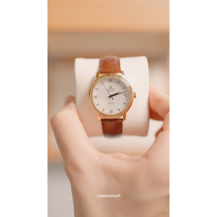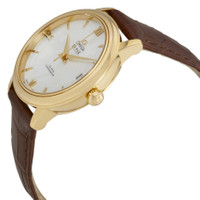 18kt yellow gold case with a brown leather strap. Fixed 18kt yellow gold bezel. White mother of pearl dial with gold-tone dauphine-style shape hands and index hour markers. Roman numerals mark the 6, 9 and 12 o'clock positions. Dial Type: Analog. Date display at the 3 o'clock position. Omega Calibre 2500 Automatic movement, based upon ETA 2892-A2, containing 27 Jewels, bitting at 25200 vph, and has a power reserve of approximately 48 hours. Scratch resistant sapphire crystal. Pull / push crown. Solid case back. Round case shape, case size: 32.7 mm, case thickness: 9.5 mm. Band width: 16 mm. Tang clasp. Water resistant at 30 meters / 100 feet. Functions: date, hour, minute, second, co-axial escapement, chronometer. Luxury watch style. Watch label: Swiss Made. Item Variations: 424 53 33 20 05 002, 424-53-33-20-05-002, 424/53/33/20/05/002, 42453332005002. Omega De Ville Prestige Mother of Pearl Dial Ladies Watch 424.53.33.20.05.002. CASE Case Size: 32 Case Thickness: 9.5 mm Case Color: 18Kt Yellow Case Material: Gold Case Shape: Round Case Back: Solid BAND Band Material: Leather Band Type: Strap Band Color: Brown Band Width: 16 mm Clasp: Tang DIAL Dial Color: White Mother of Pearl Type: Analog Crystal: Scratch Resistant Sapphire Hands: Gold-tone Dauphine-style shape Dial Markers: Index Second Markers: Roman Numerals mark the 6, 9 and 12 o'clock positions Bezel: Fixed Bezel Color: 18kt Yellow Bezel Material: Gold Crown: Pull / Push INFORMATION Brand: Omega Series: De Ville Collection Name: De Ville Prestige Gender: Womens Model: 424.53.33.20.05.002 Watch Label: Swiss Made Movement: Automatic Engine: Omega Calibre 2500 Power Reserve: 48 hours FEATURES Water Resistance: 30 meters / 100 feet Calendar: Date display at the 3 o'clock position Functions: Date, Hour, Minute, Second, Co-Axial Escapement, Chronometer Watch Features: Leather, Gold, Analog, Chronometer ADDITIONAL INFO Watch Style: Luxury Warranty: 4 Year Jomashop Warranty UPC Code: 7612586231728 Jomashop Sku: OM42453332005002 Item Variation: 424 53 33 20 05 002, 424-53-33-20-05-002, 424/53/33/20/05/002, 42453332005002 Department: Watches Category: Watches