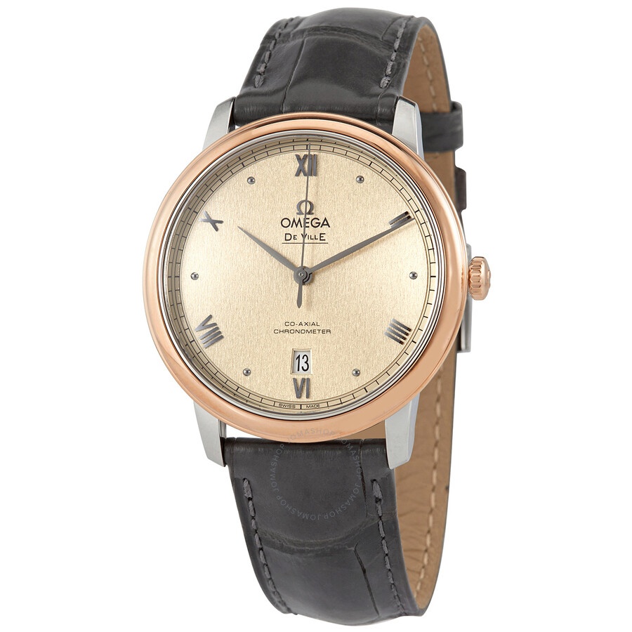 Stainless steel case with a grey leather strap. Fixed 18kt rose gold bezel. White dial with grey hands and alternating Roman numeral and cabochon hour markers. Minute markers around the outer rim. Dial Type: Analog. Date display at the 6 o'clock position. Co-Axial calibre 2500 quartz movement with a 48-hour power reserve. Scratch resistant sapphire crystal. Pull / push crown. Solid case back. Round case shape. Case size: 39.5 mm. Band width: 20 mm. Tang clasp. Water resistant at 30 meters / 100 feet. Functions: chronometer,date, hour, minute, second. De Ville Prestige Series. Luxury watch style. Watch label: Swiss Made. Omega De Ville Prestige Quartz Chronometer White Dial Men's Watch 42423402009001. GENERAL Box Type: Original Box CASE Case Size: 39 Case Material: Stainless Steel Case Shape: Round Case Back: Solid BAND Band Material: Leather Band Type: Strap Band Color: Grey Band Width: 20 mm Clasp: Tang DIAL Dial Color: White Type: Analog Crystal: Scratch Resistant Sapphire Hands: Grey Dial Markers: Alternating Roman Numeral and Cabochon Second Markers: Minute Markers around the outer rim Bezel: Fixed Bezel Material: 18kt Rose Gold Crown: Pull / Push INFORMATION Brand: Omega Series: De Ville Collection Name: De Ville Prestige Gender: Mens Model: 42423402009001 Watch Label: Swiss Made Movement: Quartz Engine: Co-Axial Calibre 2500 Power Reserve: 48 hours FEATURES Water Resistance: 30 meters / 100 feet Calendar: Date display at the 6 o'clock position Functions: Chronometer,Date, Hour, Minute, Second Watch Features: Analog, Chronometer, Gold, Leather, Stainless Steel ADDITIONAL INFO Watch Style: Luxury Warranty: 2 Year Jomashop Warranty Jomashop Sku: OM42423402009001 Department: Watches Category: Watches