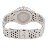 Silver-tone stainless steel case and bracelet. Fixed silver-tone stainless steel bezel. Rose silvery dial with rose gold-tone hands and Roman numeral hour markers. Minute scale around the inner rim. Dial Type: Analog. Quartz movement. Scratch resistant sapphire crystal. Solid case back. Round case shape, case size: 30 mm. Fold over clasp with a safety release. Water resistant at 30 meters / 100 feet. Functions: hour, minute. Additional Info: original box, international warranty card, manual (complete accessories). De Ville Series. Luxury watch style. Watch label: Swiss Made. Omega De Ville Quartz Silver Dial Ladies Watch 434.10.30.60.02.001. INFORMATION Brand: Omega Series: De Ville Collection Name: De Ville Gender: Womens Model: 434.10.30.60.02.001 Watch Label: Swiss Made Movement: Quartz CASE Case Size: 30 mm Case Material: Stainless Steel Case Shape: Round Case Back: Solid BAND Band Material: Stainless Steel Band Type: Bracelet Band Color: Silver-tone Clasp: Fold Over with Safety Release DIAL Dial Color: Rose Silvery Type: Analog Crystal: Scratch Resistant Sapphire Hands: Rose Gold-tone Dial Markers: Roman Numeral Second Markers: Minute Scale around the inner rim Bezel: Fixed Bezel Color: Silver-tone Bezel Material: Stainless Steel FEATURES Water Resistance: 30 meters / 100 feet Functions: Hour, Minute Watch Features: Stainless Steel, Gold, Analog ADDITIONAL INFO Watch Style: Luxury Warranty: 2 Year Jomashop Warranty Additional Info: Original Box, International Warranty Card, Manual (Complete Accessories) Jomashop Sku: OM43410306002001 Department: Watches Category: Watches