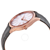 18kt rose gold case with a grey alligator leather strap. Fixed 18kt rose gold set with diamonds bezel. Opaline silver dial with rose gold-tone hands and Roman numeral hour markers. Dial Type: Analog. Omega Calibre 4061 quartz movement. Scratch resistant sapphire crystal. Pull / push crown. Solid case back. Round case shape, case size: 36 mm. Band width: 18 mm. Tang clasp. Water resistant at 30 meters / 100 feet. Functions: hour, minute. De Ville Sedna Series. Luxury watch style. Watch label: Swiss Made. Omega De Ville Sedna Quartz Diamond Ladies Watch 428.58.36.60.02.001. INFORMATION Brand: Omega Series: De Ville Sedna Collection Name: De Ville Sedna Gender: Womens Model: 428.58.36.60.02.001 Watch Label: Swiss Made Movement: Quartz Engine: Omega Calibre 4061 CASE Case Size: 36 mm Case Material: 18kt Rose Gold Case Shape: Round Case Back: Solid BAND Band Material: Alligator Leather Band Type: Strap Band Color: Grey Band Width: 18 mm Clasp: Tang DIAL Dial Color: Opaline Silver Type: Analog Crystal: Scratch Resistant Sapphire Hands: Rose Gold-tone Dial Markers: Roman Numeral Bezel: Fixed Bezel Material: 18kt Rose Gold set with Diamonds Crown: Pull / Push FEATURES Water Resistance: 30 meters / 100 feet Functions: Hour, Minute Watch Features: Diamond, Leather, Gold, Analog, Alligator Leather ADDITIONAL INFO Watch Style: Luxury Warranty: 4 Year Jomashop Warranty UPC Code: 7612586273810 Jomashop Sku: OM42858366002001 Department: Watches Category: Watches