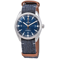 Stainless steel case with a blue fabric NATO strap. Fixed stainless steel bezel. Blue jeans dial with luminous silver-tone hands and index hour markers. Arabic numerals mark the 3, 6, 9 and 12 o'clock position. Minute markers around the outer rim. Dial Type: Analog. Luminescent hands and markers. Omega calibre 8806 Automatic movement has a power reserve of approximately 55 hours. Scratch resistant sapphire crystal. Screw down crown. Solid case back. Round case shape. Case size: 40 mm. Band width: 20 mm. Tang clasp. Water resistant at 150 meters / 500 feet. Functions: hour, minute, second, co-axial escapement, chronometer, magnetic resistant. Casual watch style. Watch label: Swiss Made. Omega Railmaster Automatic Blue Jeans Dial Men's Watch 220.12.40.20.03.001. INFORMATION Brand: Omega Series: Railmaster Collection Name: Railmaster Gender: Mens Model: 220.12.40.20.03.001 Watch Label: Swiss Made Movement: Automatic Engine: Omega Calibre 8806 Power Reserve: 55 hours CASE Case Size: 40 mm Case Material: Stainless Steel Case Shape: Round Case Back: Solid BAND Band Material: Fabric NATO Band Type: Strap Band Color: Blue Band Width: 20 mm Clasp: Tang DIAL Dial Color: Blue Jeans Type: Analog Crystal: Scratch Resistant Sapphire Hands: Luminous Silver-tone Dial Markers: Index Second Markers: Arabic Numerals mark the 3, 6, 9 and 12 o'clock position. Minute Markers around the outer rim Luminiscence: Hands and Markers Bezel: Fixed Bezel Color: Silver-tone Bezel Material: Stainless Steel Crown: Screw Down FEATURES Water Resistance: 150 meters / 500 feet Functions: Hour, Minute, Second, Co-Axial Escapement, Chronometer, Magnetic Resistant Watch Features: Stainless Steel, Chronometer, Analog ADDITIONAL INFO Watch Style: Casual Warranty: 4 Year Jomashop Warranty UPC Code: 7612586294822 Jomashop Sku: OM22012402003001 Department: Watches Category: Watches
