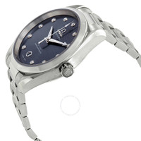 Stainless steel case with a stainless steel bracelet. Fixed smooth stainless steel bezel. Blue grey dial with luminous silver-tone arrow-shaped hands and diamond hour markers. Dial Type: Analog. Luminescent hands. Date display at the 6 o'clock position. Omega calibre 8800 automatic movement, containing 35 Jewels, bitting at 25200 vph, and has a power reserve of approximately 55 hours. Scratch resistant sapphire crystal. Screw down crown. Transparent case back. Round case shape. Case size: 38 mm. Case thickness: 13.2 mm. Band width: 19 mm. Fold over clasp with a push button release. Water resistant at 150 meters / 500 feet. Functions: date, hour, minute, second. Seamaster Aqua Terra Series. Luxury watch style. Watch label: Swiss Made. Omega Seamaster Aqua Terra Automatic Diamond Watch 220.10.38.20.53.001. INFORMATION Brand: Omega Series: Seamaster Aqua Terra Collection Name: Seamaster Aqua Terra Gender: Womens Model: 220.10.38.20.53.001 Watch Label: Swiss Made Movement: Automatic Engine: Omega Calibre 8800 Power Reserve: 55 hours CASE Case Size: 38 mm Case Thickness: 13.2 mm Case Material: Stainless Steel Case Shape: Round Case Back: Transparent BAND Band Material: Stainless Steel Band Type: Bracelet Band Color: Silver-tone Band Width: 19 mm Clasp: Fold Over with Push Button Release DIAL Dial Color: Blue Grey Type: Analog Crystal: Scratch Resistant Sapphire Hands: Luminous Silver-tone Arrow-shaped Dial Markers: Diamond Luminiscence: Hands Bezel: Fixed Smooth Bezel Color: Silver-tone Bezel Material: Stainless Steel Crown: Screw Down FEATURES Water Resistance: 150 meters / 500 feet Calendar: Date display at the 6 o'clock position Functions: Date, Hour, Minute, Second Watch Features: Diamond, Stainless Steel, Analog ADDITIONAL INFO Watch Style: Luxury Warranty: 4 Year Jomashop Warranty UPC Code: 7612586269837 Jomashop Sku: OM22010382053001 Department: Watches Category: Watches